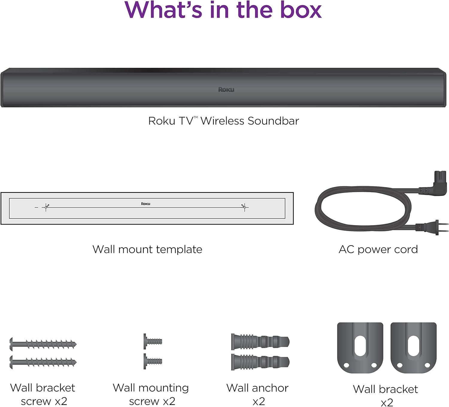 Roku TV Wireless Soundbar, Soundbar Exclusively for RokuTV with Enhanced Stereo Sound, Clear Dialogue, and Simple Wireless Setup