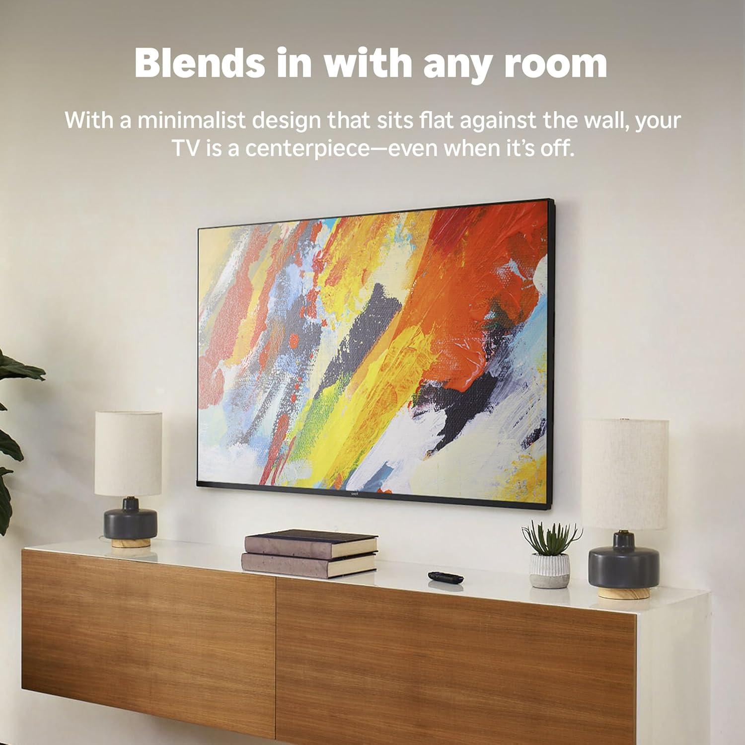 Good TV mounts stay out of the picture. Mount your Roku Pro Series TV with our ultra-slim TV wall mount. With a minimalist design that sits flat against the wall, your TV is a centerpiece—even when it’s off. Enjoy a hinged wall bracket for easy to access the back of the TV, and a kickstand that supports it away from the wall. Only compatible with Roku Pro Series TVs.