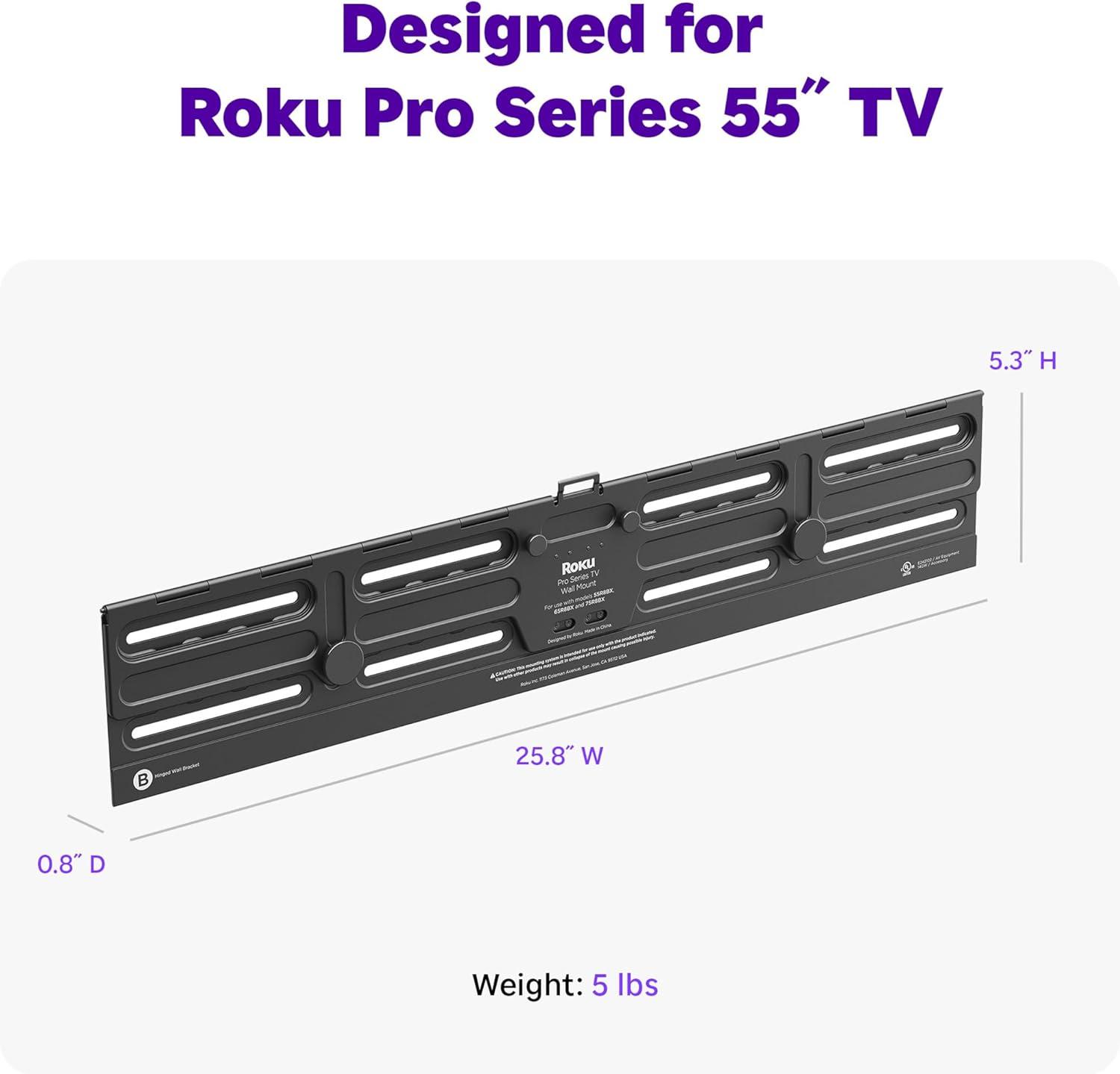 Roku Wall Mount Kit for 75-Inch Pro Series TV – Ultra-Slim with Minimalist, Flat Design – Hinged TV Mount and Kickstand for Easy Access to Cables(55″)