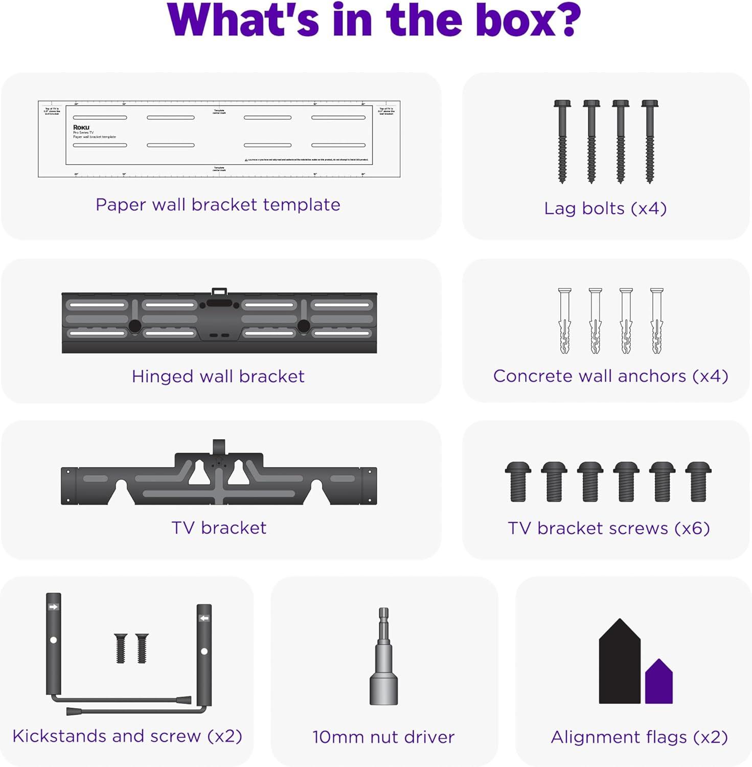Good TV mounts stay out of the picture. Mount your Roku Pro Series TV with our ultra-slim TV wall mount. With a minimalist design that sits flat against the wall, your TV is a centerpiece—even when it’s off. Enjoy a hinged wall bracket for easy to access the back of the TV, and a kickstand that supports it away from the wall. Only compatible with Roku Pro Series TVs.