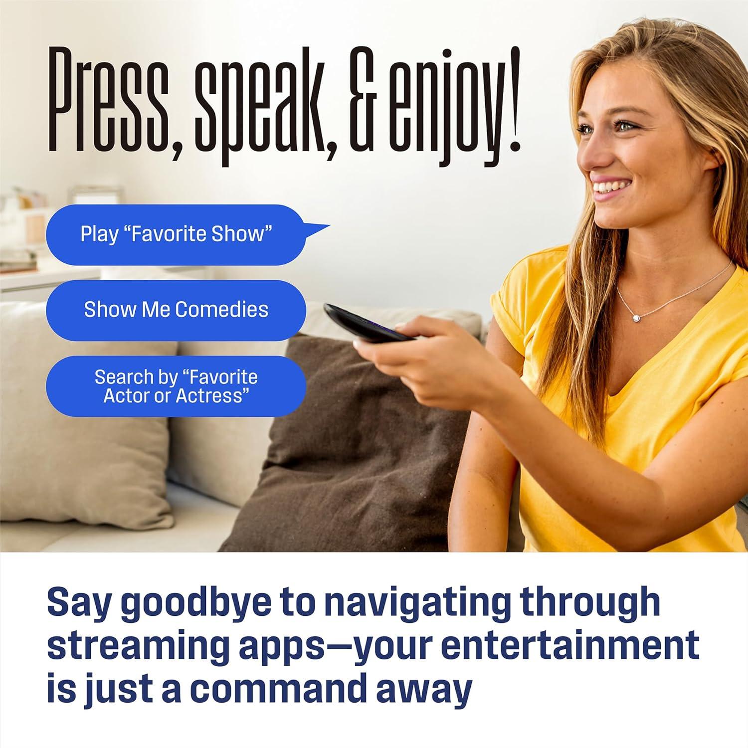 ROKU VOICE REMOTE: A convenient push-to-talk button allows the use of voice control to effortlessly search, play entertainment, and perform various tasks. Harness the power of your voice to swiftly explore a vast array of channels, indulge in entertainment, and much more.